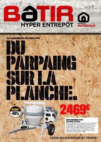 Les Hyper Entrepôts BATIR de Ducos et Trinité vous proposent régulièrement de profiter de nouvelles promotions sur le bricolage, la décoration, le jardinage, les matériaux. Un choix MAXI et des prix MINI ! Vous êtes un particulier ? Profitez de tous les privilèges de notre programme fidélité ! Vous êtes un professionel ? Bénéficiez de services exclusifs et d'horaires dédiés !